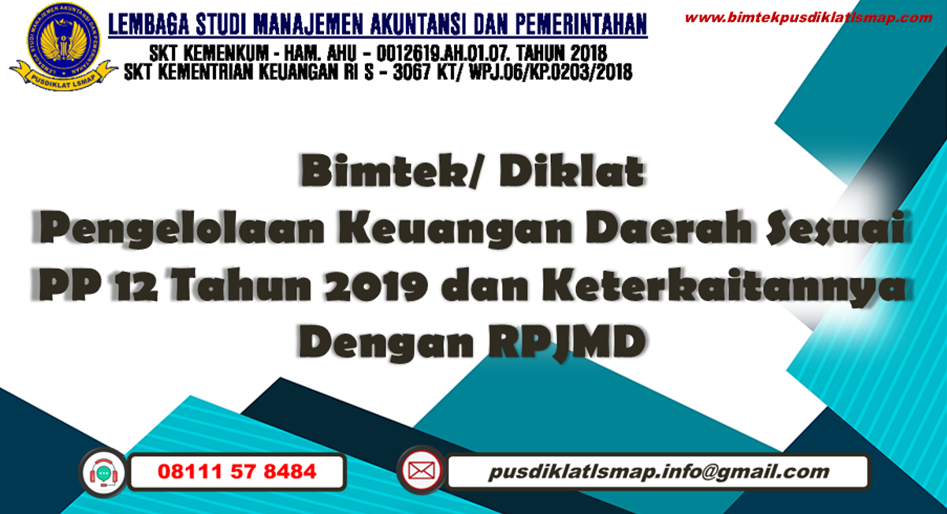 Sehubungan dengan hal di atas dalam rangka Peningkatan Kapasitas dan Kapabilitas guna mendukung kebijakan serta regulasi baru Pemerintah Pusat. Maka kami Lembaga Studi Manajemen Akuntansi dan Pemerintahan mengajak Bapak/Ibu/Saudara(i) Aparatur di Lingkungan Pemerintahan Provinsi, kabupaten dan Kota untuk mengikuti Bimbingan Teknis dengan Tema: Bimtek Pengelolaan Keuangan Daerah Sesuai PP 12 Tahun 2019 dan Keterkaitannya Dengan RPJMD.