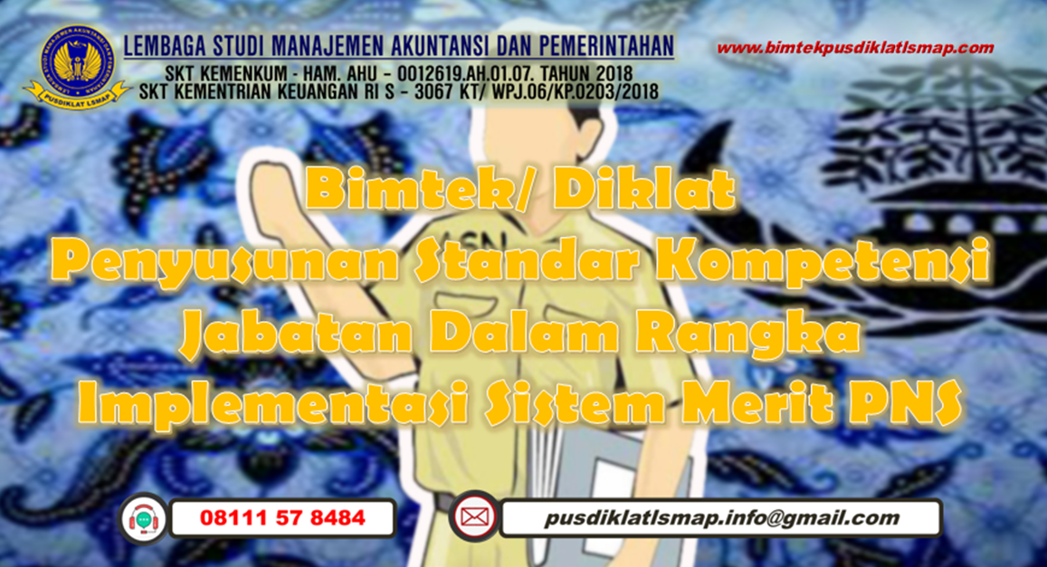 Sehubungan dengan hal di atas dalam rangka Peningkatan Kapasitas dan Kapabilitas guna mendukung kebijakan serta regulasi baru Pemerintah Pusat. Maka kami Lembaga Studi Manajemen Akuntansi dan Pemerintahan mengajak Bapak/Ibu/Saudara(i) Aparatur di Lingkungan Pemerintahan Provinsi, kabupaten dan Kota untuk mengikuti Bimbingan Teknis dengan Tema: Bimtek Penyusunan Standar Kompetensi Jabatan Dalam Rangka Implementasi Sistem Merit PNS.