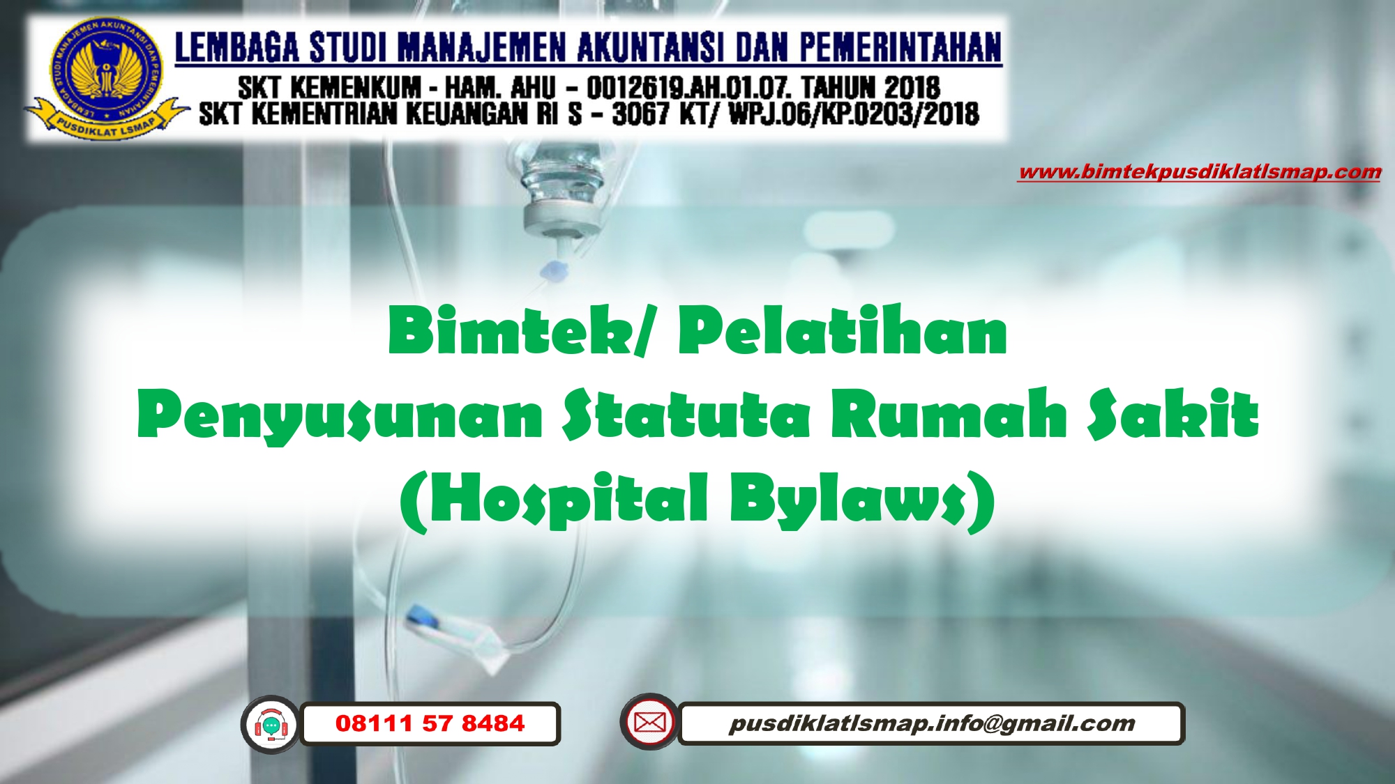 Sehubungan dengan hal di atas dalam rangka memahami serta meningkatan Kapasitas dan Kapabilitas guna mendukung kebijakan serta regulasi baru Pemerintah Pusat. Maka kami Lembaga Studi Manajemen Akuntansi dan Pemerintahan mengajak Bapak/Ibu/Saudara(i) untuk mengikuti Bimbingan Teknis dengan Tema: Penyusunan Statuta Rumah Sakit (Hospital Bylaws).