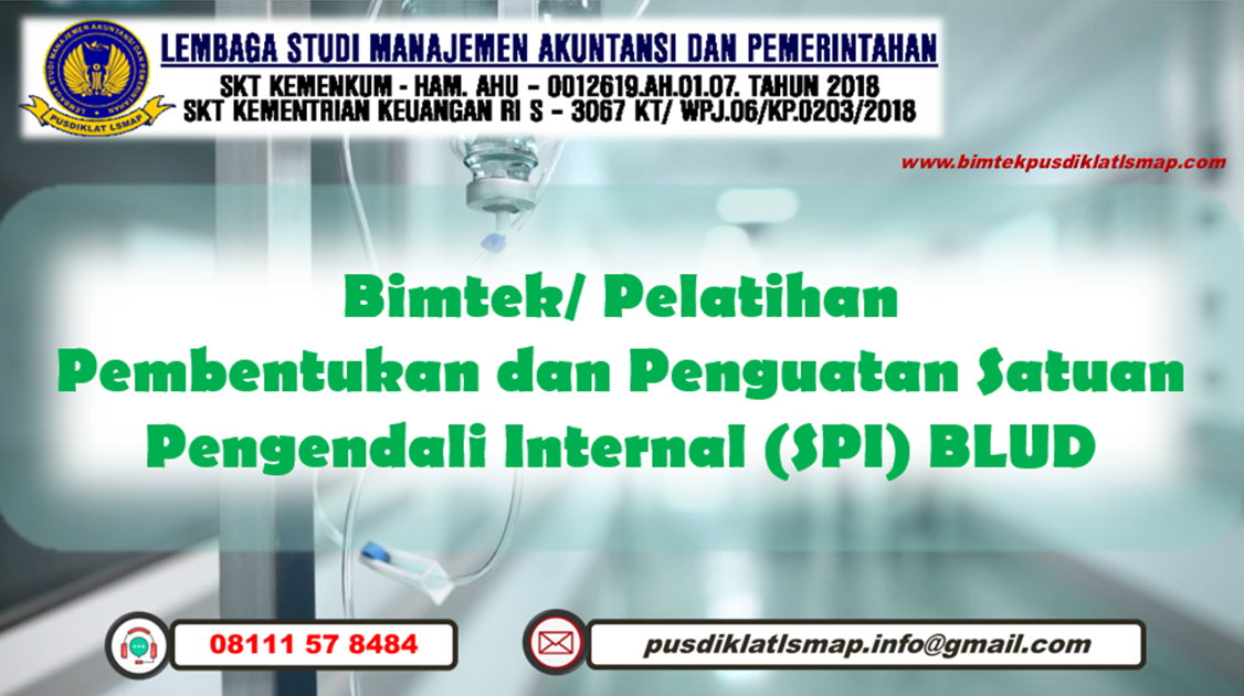 Sehubungan dengan hal di atas dalam rangka Peningkatan Kapasitas dan Kapabilitas guna mendukung kebijakan serta regulasi baru Pemerintah Pusat. Maka kami Lembaga Studi Manajemen Akuntansi dan Pemerintahan mengajak Bapak/Ibu/Saudara(i) Aparatur di Lingkungan BLUD Provinsi, kabupaten dan Kota untuk mengikuti Bimbingan Teknis dengan Tema: Pembentukan dan Penguatan Satuan Pengawas Internal (SPI) BLUD