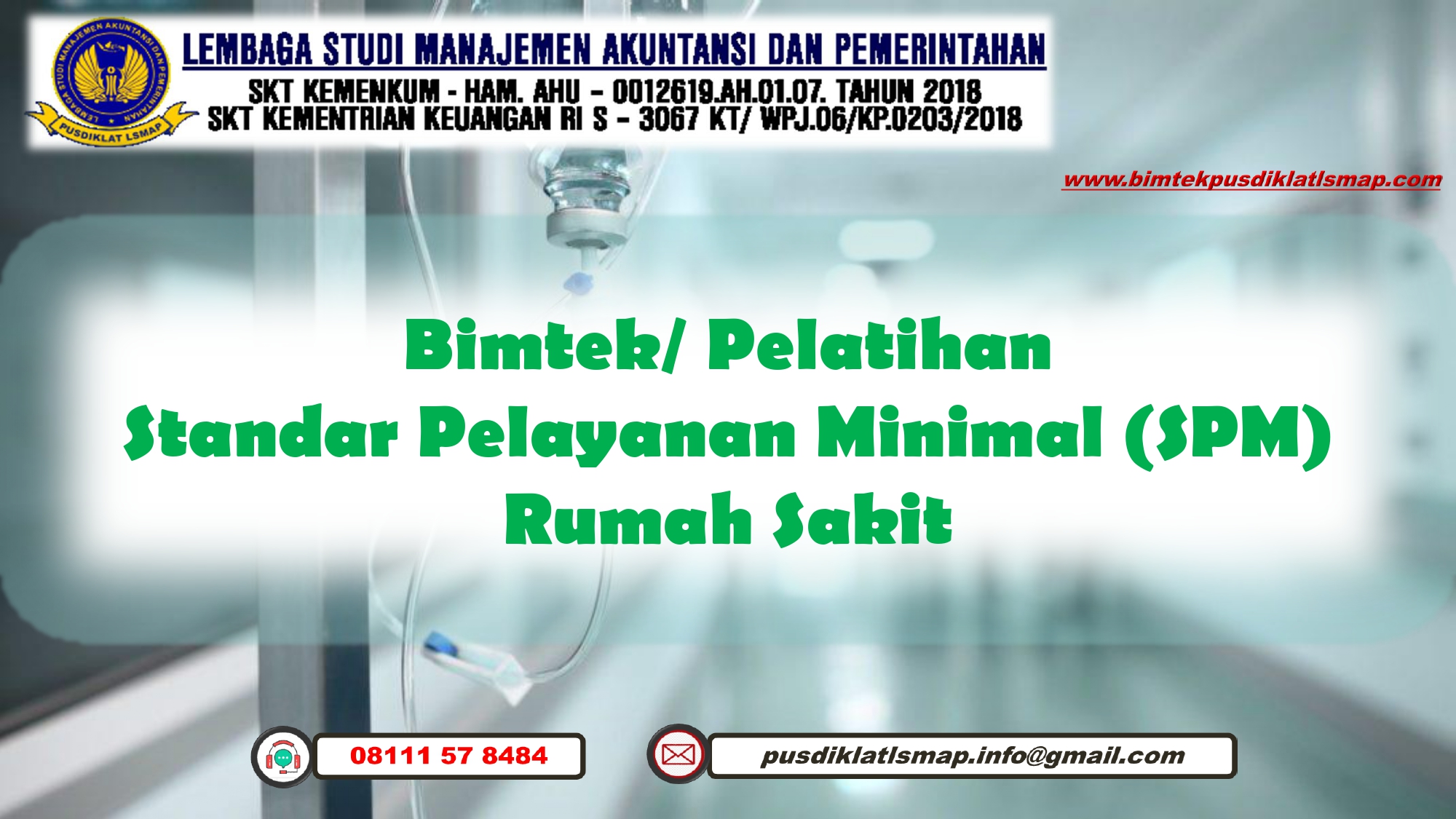 Sehubungan dengan hal di atas dalam rangka memahami serta meningkatan Kapasitas dan Kapabilitas guna mendukung kebijakan serta regulasi baru Pemerintah Pusat. Maka kami Lembaga Studi Manajemen Akuntansi dan Pemerintahan mengajak Bapak/Ibu/Saudara(i) untuk mengikuti Bimbingan Teknis dengan Tema: Standar Pelayanan Minimal (SPM) Rumah Sakit.