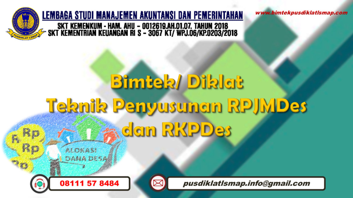 Sehubungan dengan hal di atas dalam rangka Peningkatan Kapasitas dan Kapabilitas guna mendukung kebijakan serta regulasi baru Pemerintah Pusat. Maka kami Lembaga Studi Manajemen Akuntansi dan Pemerintahan mengajak Bapak/Ibu/Saudara(i) Aparatur di Lingkungan Pemerintahan Provinsi, kabupaten dan Kota untuk mengikuti Bimbingan Teknis dengan Tema: Bimtek Teknik Penyusunan RPJM Desa dan RKP Desa.
