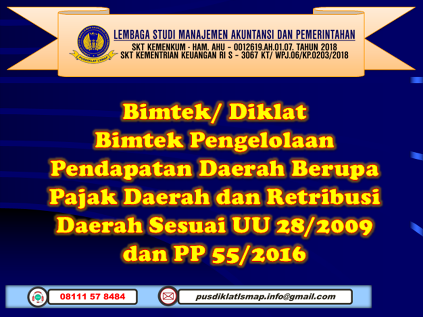 Info Bimtek/ Diklat Pengelolaan Pajak Daerah Dan Retribusi Daerah Dalam Mengoptimalisasi Pendapatan Asli Daerah PAD Bimtek/ Diklat Pengelolaan Pajak Daerah…