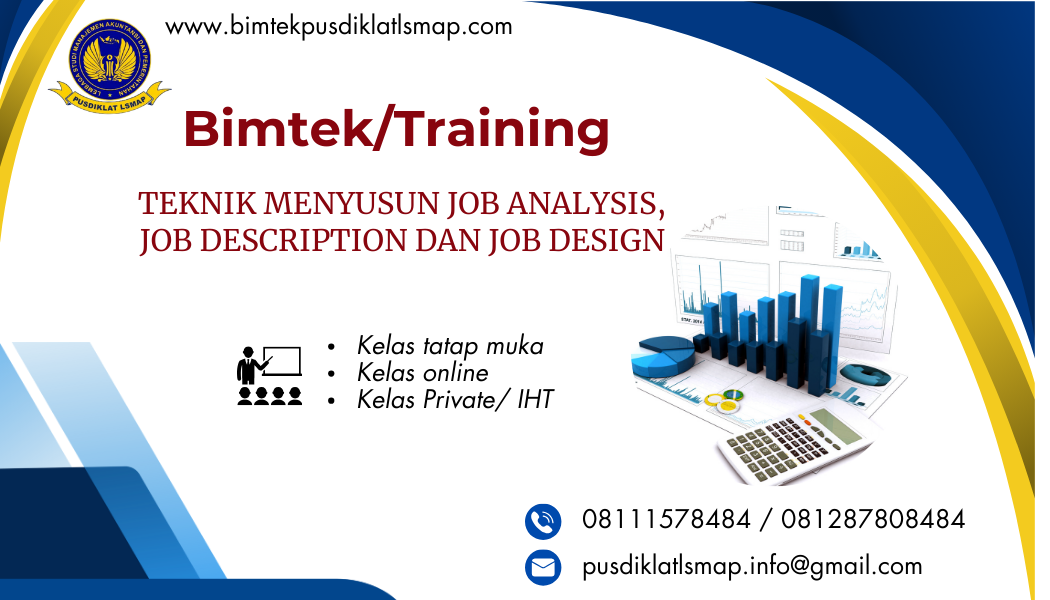 Sehubungan dengan hal di atas dalam rangka meningkatan Kapasitas dan Kapabilitas. Maka kami Lembaga Studi Manajemen Akuntansi dan Pemerintahan mengajak Bapak/Ibu/Saudara (i) untuk mengikuti Bimbingan Teknis dengan tema : Training Teknik Menyusun Job Analysis Job, Description dan Job Design.